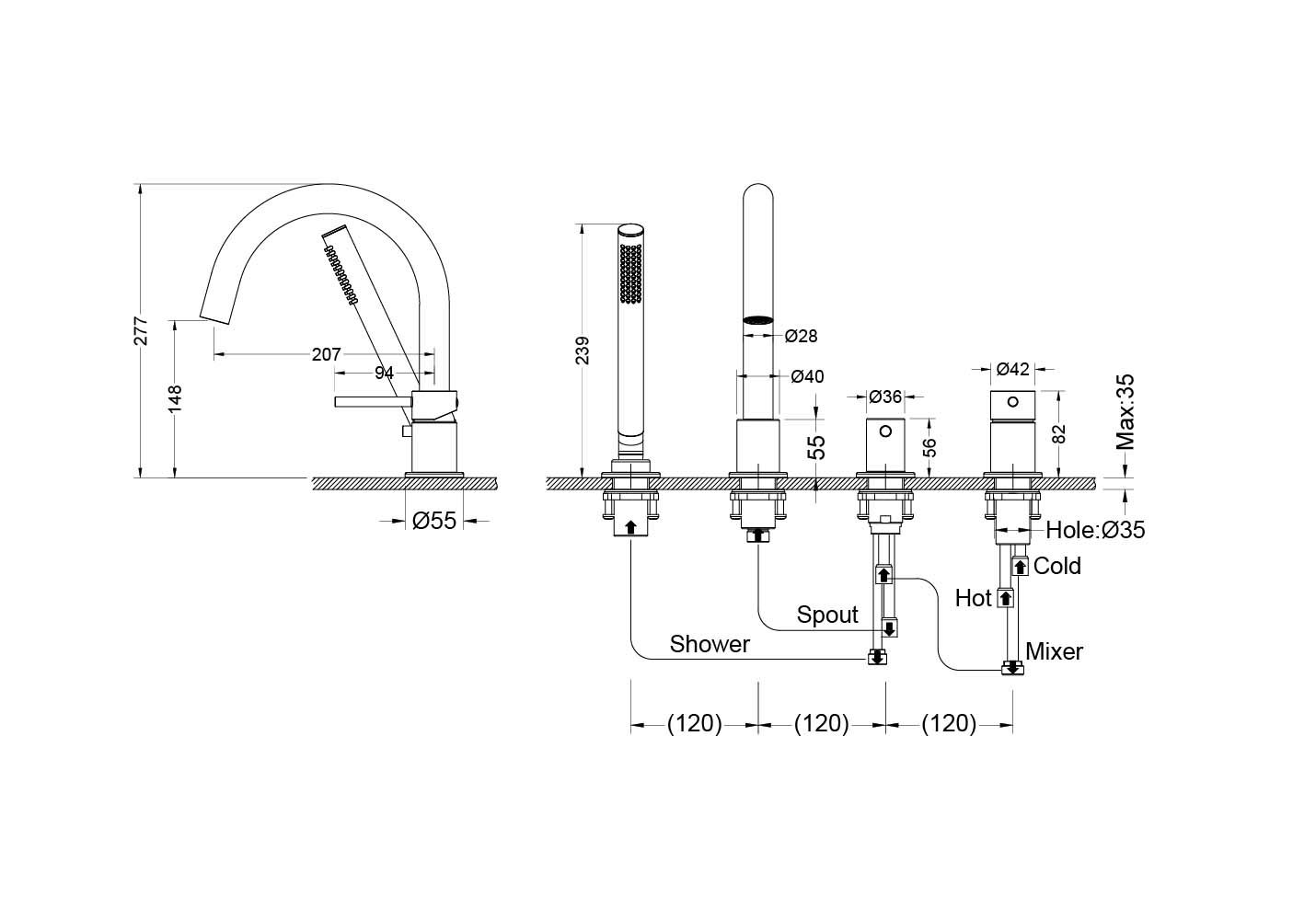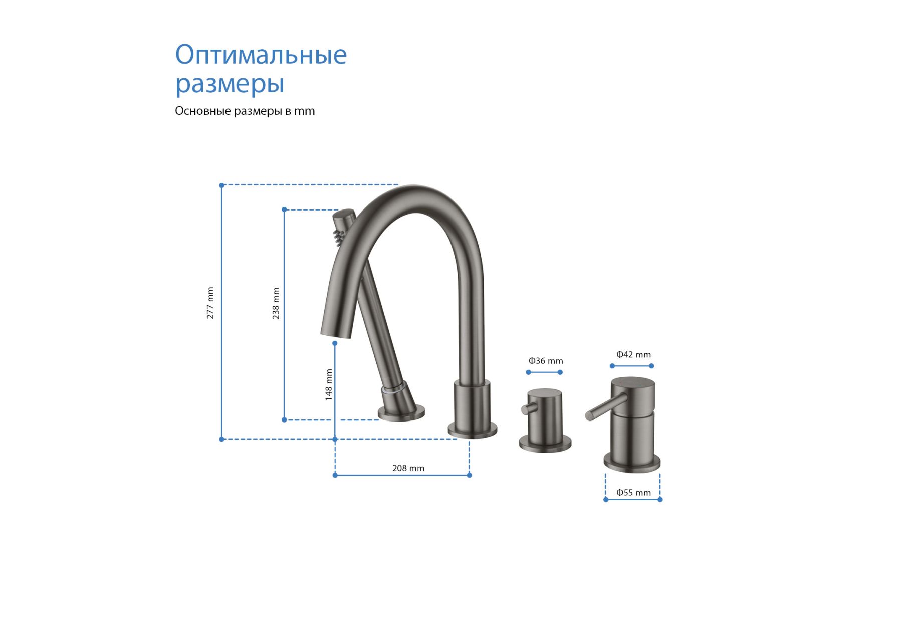 Смеситель на борт ванны Aquatek Европа AQ1348BGM оружейная сталь купить