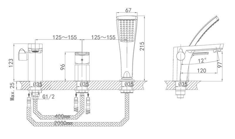Смеситель на борт ванны DQ Berlin Freie хром DA1434901 купить