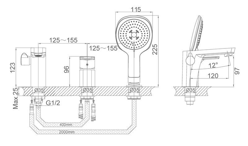 Смеситель на борт ванны DQ Berlin Technische DA1434915 врезной на борт ванны, однорычажный, на три отверстия для монтажа.