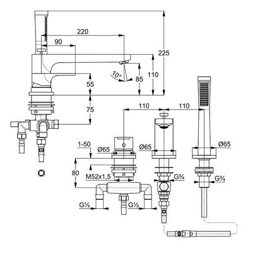 - однорычажный смеситель для ванны и душа DN 15