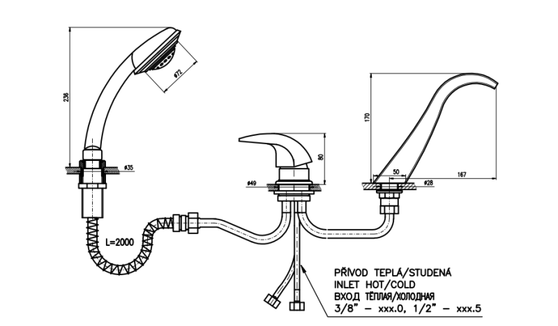 Смеситель на борт ванны Rav Slezak Dunaj D461.5YZ золото купить