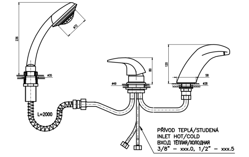Смеситель на борт ванны Rav Slezak Dunaj D471.5YZ золото