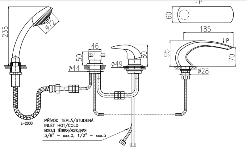 Смеситель на борт ванны Rav Slezak Dunaj D472.5P хром
