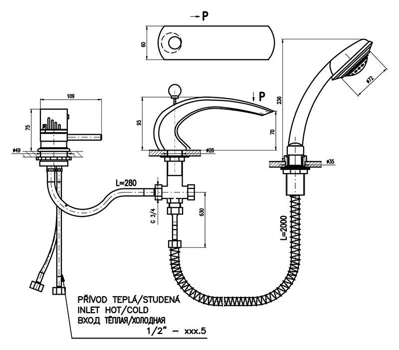 Смеситель на борт ванны Rav Slezak Dunaj DT272.5S хром