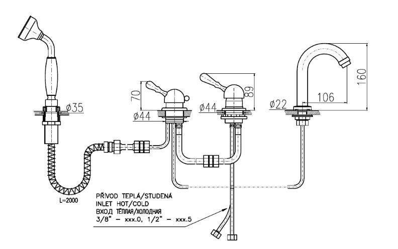 Смеситель на борт ванны Rav Slezak Labe L562.5PSM бронза