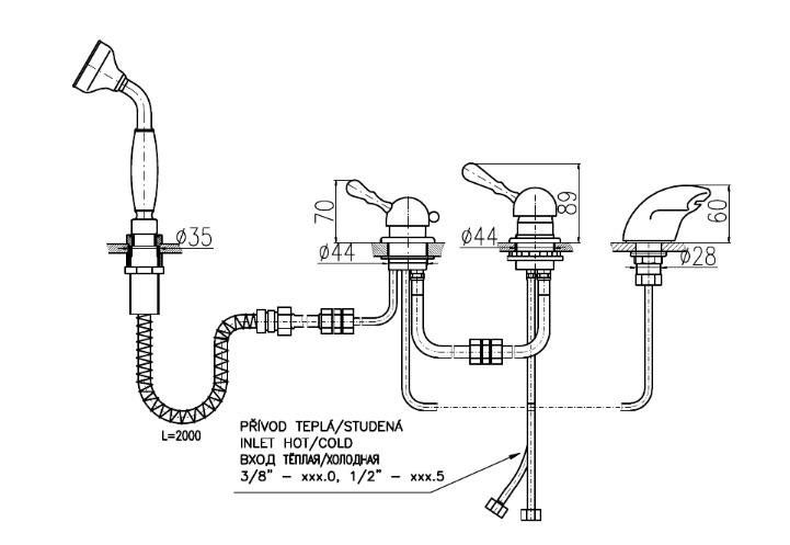 Смеситель на борт ванны Rav Slezak Labe L570.5SSM бронза