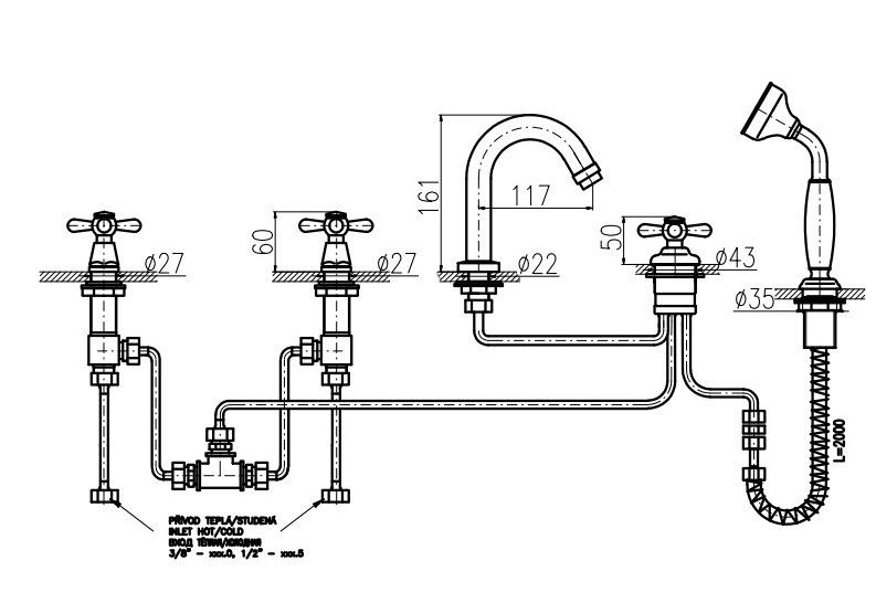 Смеситель на борт ванны Rav Slezak Morava retro MK164.5P хром