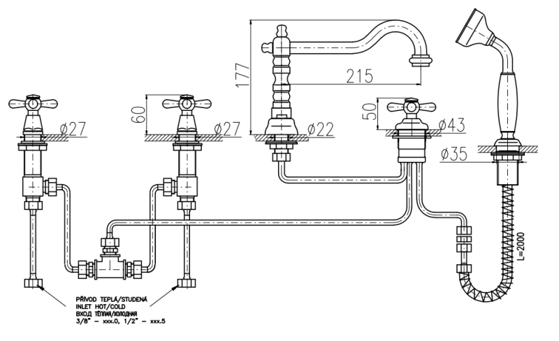 Смеситель на борт ванны Rav Slezak Morava retro MK564.5PSM бронза