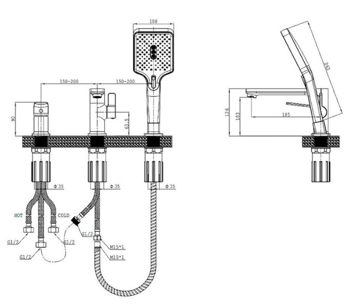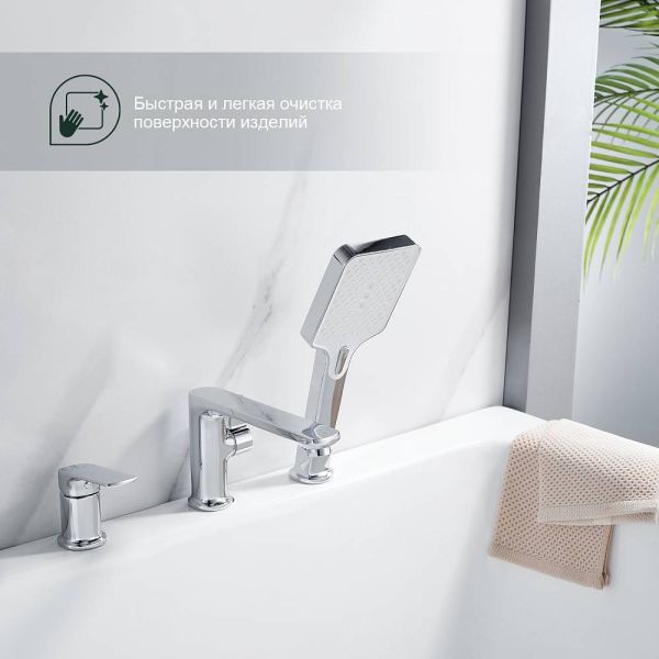 Смеситель на борт ванны Splenka S30.31. Цвет: хром. Материал: латунь. Управление: однорычажное. Механизм: керамический картридж. Излив: фиксированный. Стандарт подводки: G 1/2. Тип подводки: гибкая. Количество режимов струи ручного душа: 3. Монтаж: на борт ванны.