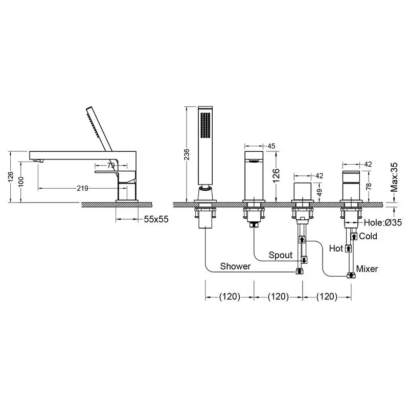 Врезной смеситель придаст ванной комнате оригинальности, благодаря тому, что шланг ручной лейки и все соединения скрыты.