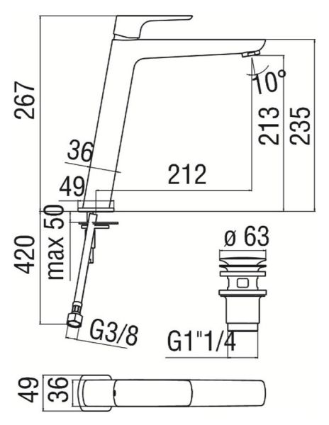 Высота смесителя:26.7