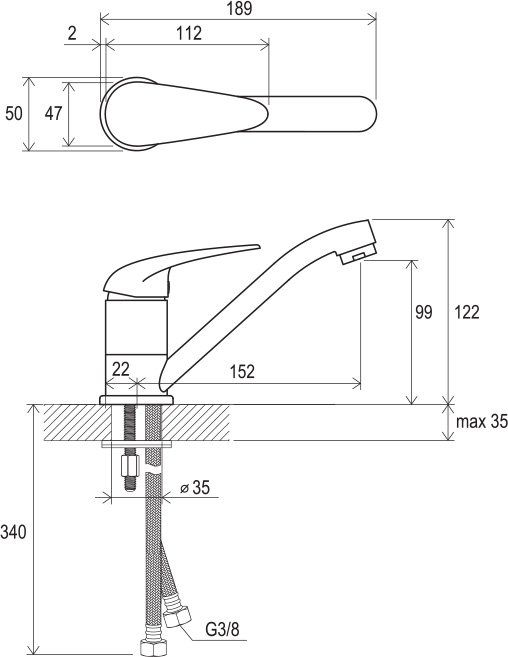 - соединительные шланги: гибкий 350 мм, диаметр G3/8