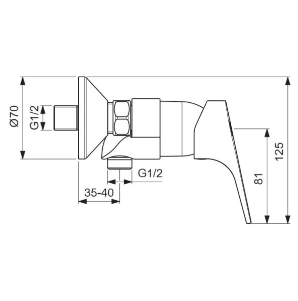 NEXT Настенный смеситель для душа, с душевым гарнитуром (душевая лейка Ø70 мм, металлический шланг 1500 мм, держатель для лейки).