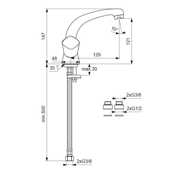 QUADRO Смеситель для умывальника с литым поворотным изливом.Смеситель двухрычажный