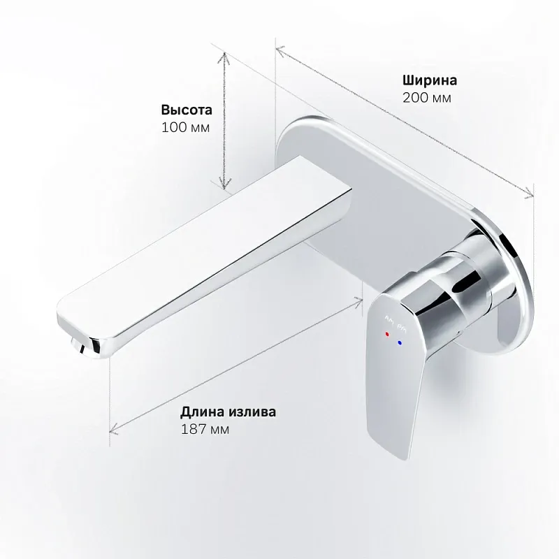 Размер смесителя (Ш/Г/В): 200x187x100 мм. Материал - латунь. Цвет - хром.