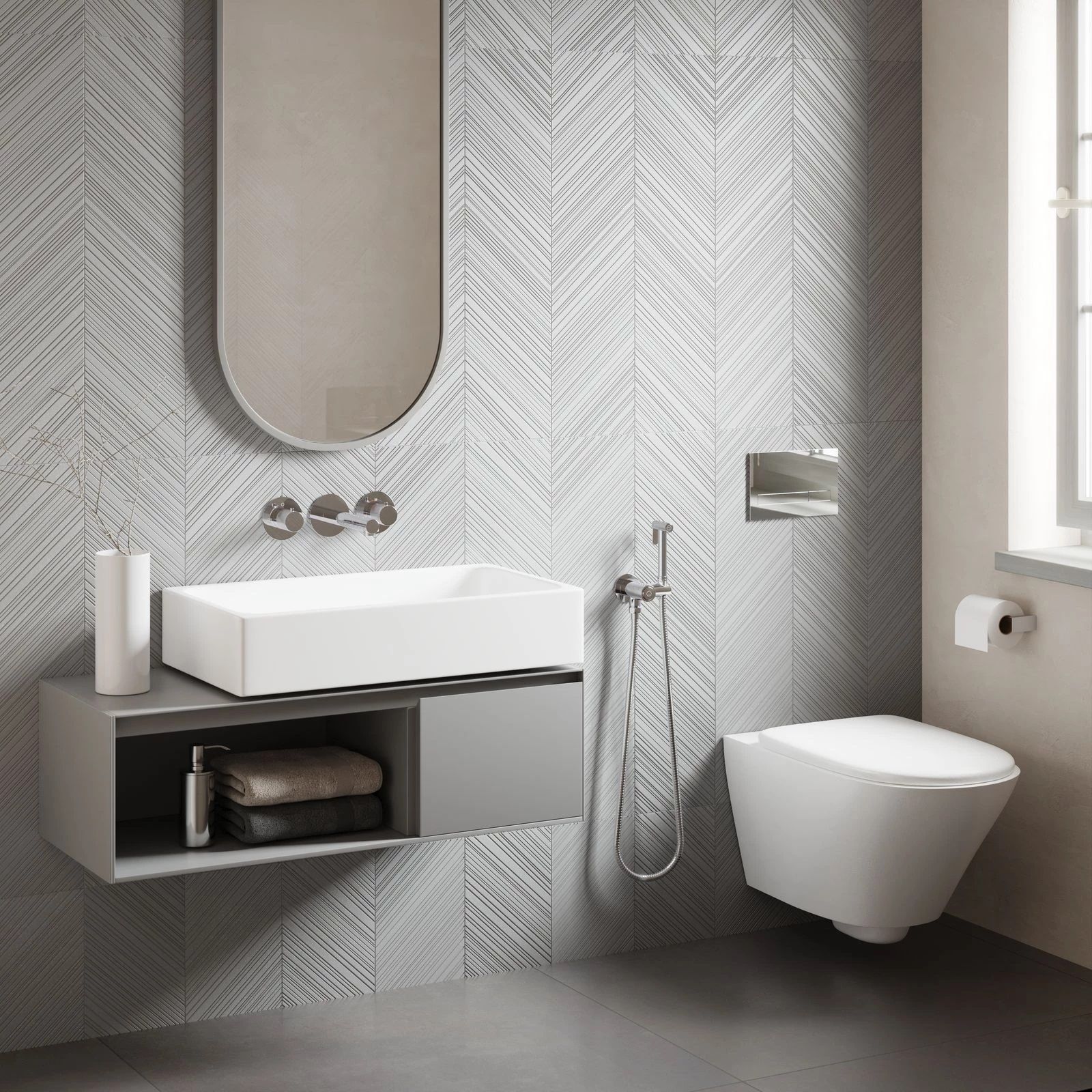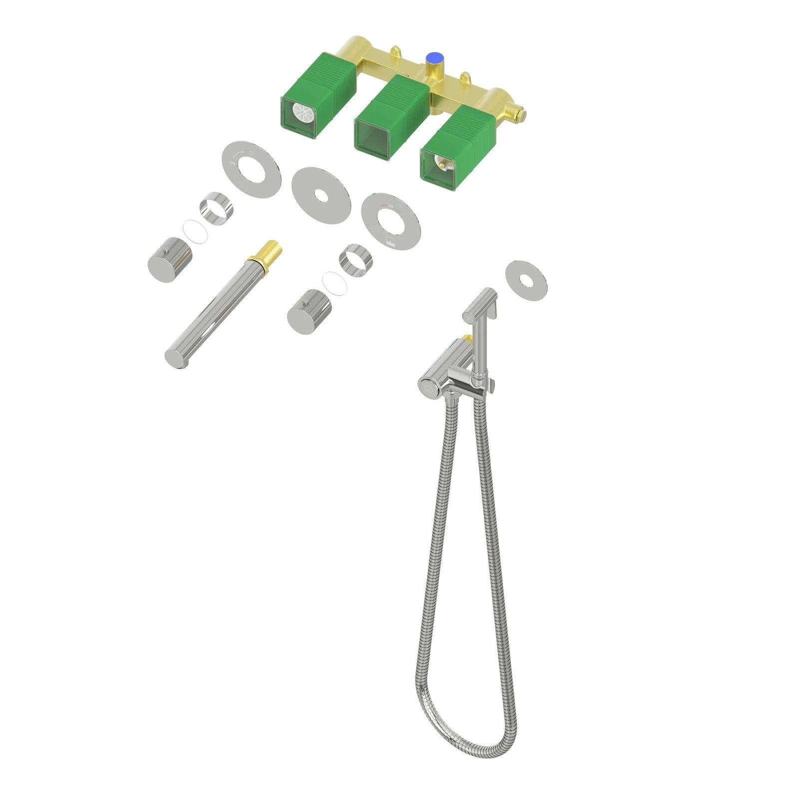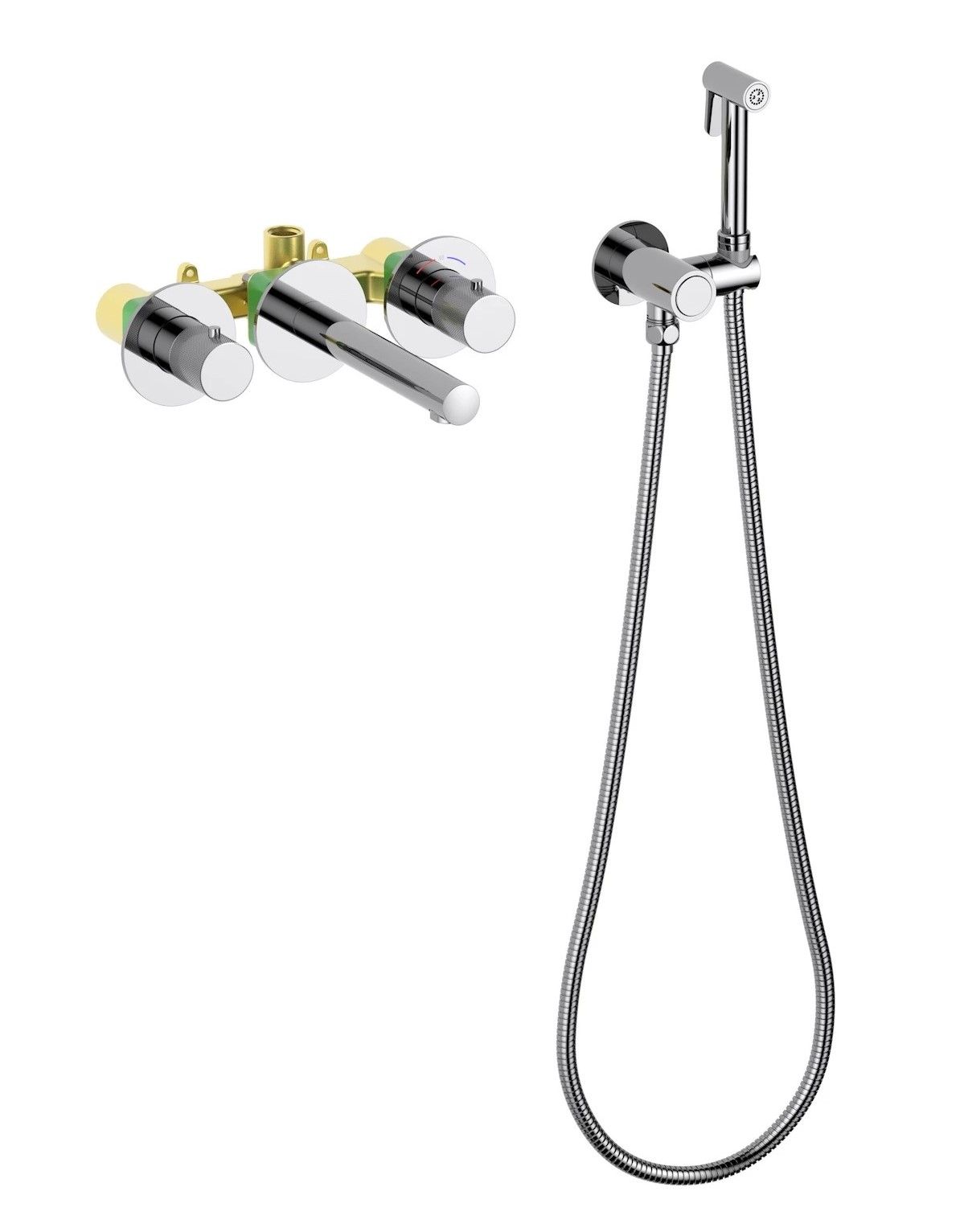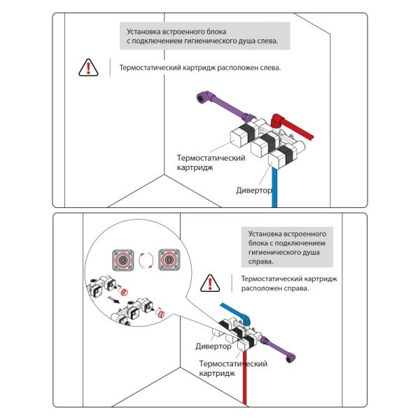 Встраиваемый смеситель с функцией подключения гигиенического душа Timo Saona 2383 предназначен для монтажа в твердой или полой стене. Встроенныи? блок может быть установлен с левым или правым подключением гигиенического душа. Гигиенический душ можно установить автономно на любом расстоянии от смесителя. Для использования гигиенического душа включать смеситель не требуется. Подача воды на гигиеническую лейку осуществляется нажатием кнопки, расположенной на корпусе держателя лейки. В смесителе установлен термостатический картридж для поддержания стабильной температуры воды в смесителе и гигиеническом душе. Подача воды и увеличение напора в смесителе осуществляется поворотом ручки расположенной справа (при установке душа слева). Сложностей монтажа не возникает при установке смесителя опытным сантехником. Основные преимущества встроенного смесителя: коммуникации, крепления и механизмы спрятаны в стену и видны только декоративные элементы, установить встроенный смеситель можно в любом месте. Внимательно изучите инструкцию по монтажу и эксплуатации.