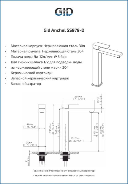 Смеситель высокий для раковины Gid Anchel SS979-CH-D SS979CHD хром Смеситель высокий для раковины Gid Anchel SS979-CH-D SS979CHD хром Казань 6241 7900.00 GID