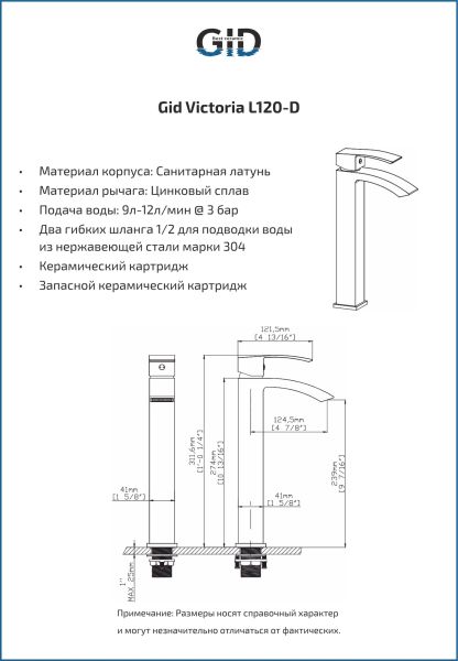 Смеситель высокий для раковины Gid Victoria L120-CH-D L120CHD хром Смеситель высокий для раковины Gid Victoria L120-CH-D L120CHD хром Казань 11000.00 {old_price} GID