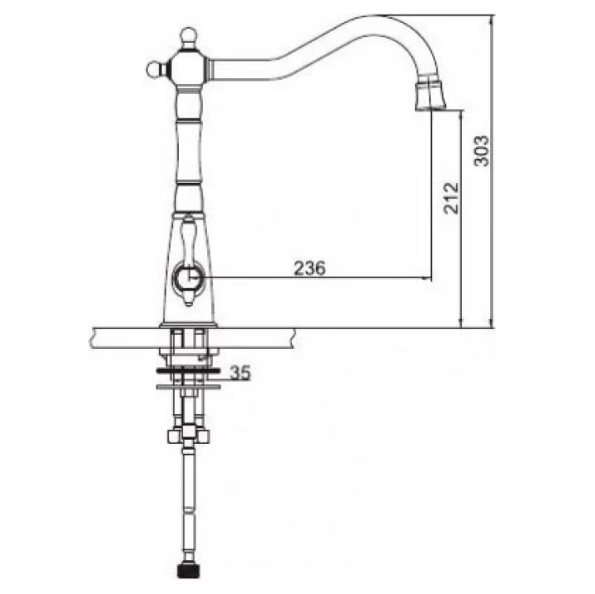 - высота смесителя: 303 мм