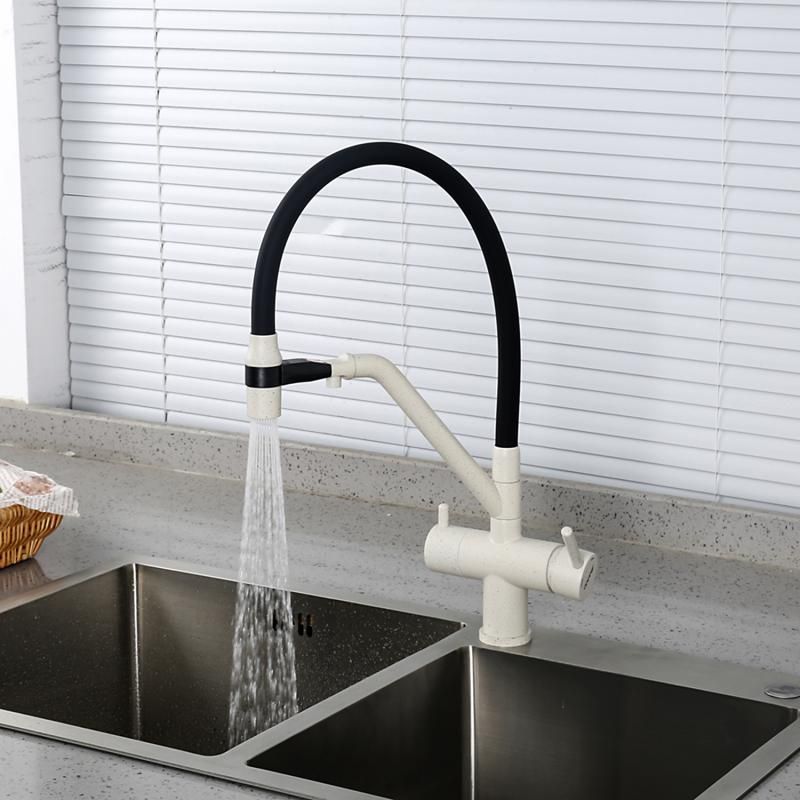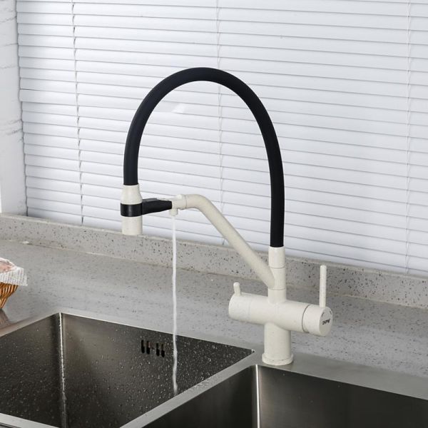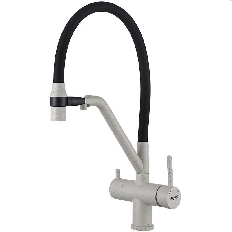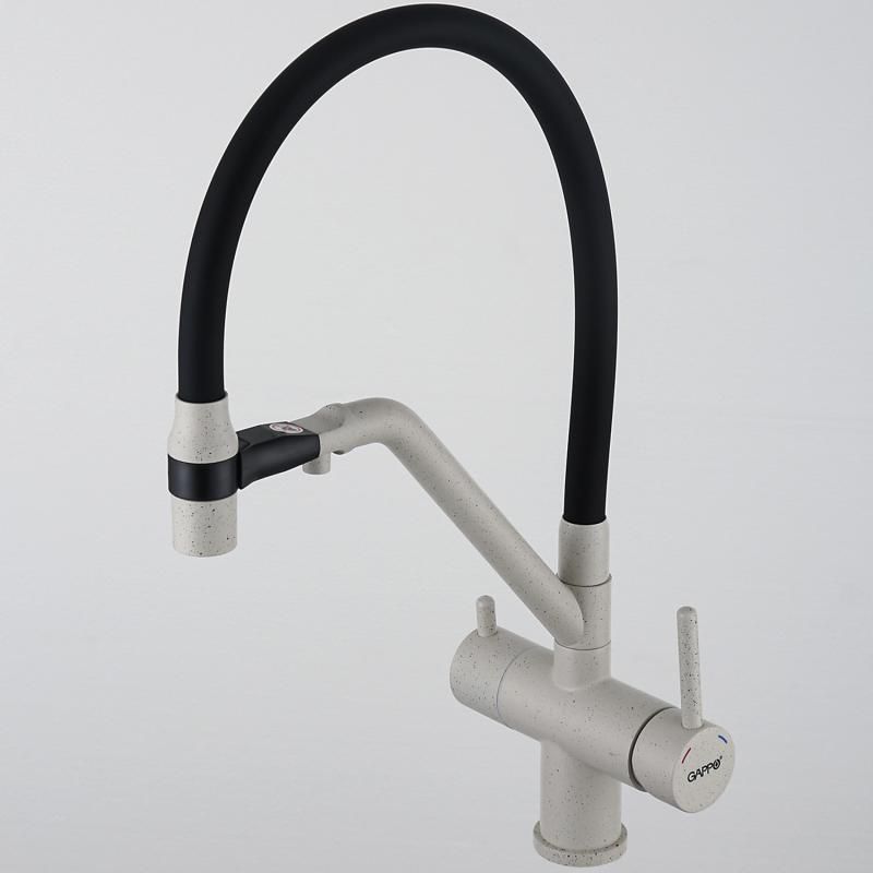 Смесители для кухни Gappo G4398-81 под фильтр с гибким изливом белый/чёрный купить