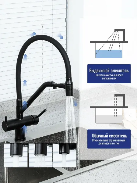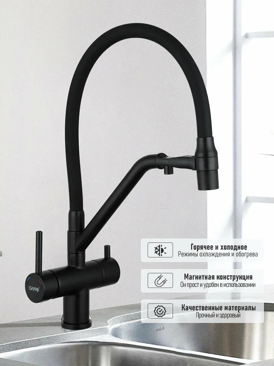 Смесители для кухни Gappo G4398-86 под фильтр с гибким изливом чёрный Смесители для кухни Gappo G4398-86 под фильтр с гибким изливом чёрный Казань 16976.33 {old_price} Gappo