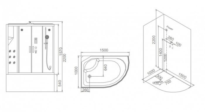 SSWW BU103B L Душевая кабина 1500X1000X2250 купить