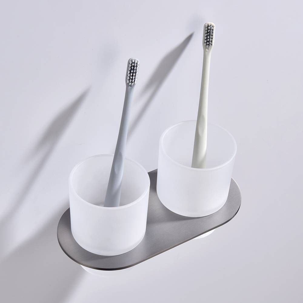 Raglo R300.08.09 Два стеклянных стакана с держателем. Форма округлая, цвет - графит, полуматовое покрытие. Крепление в комплекте.