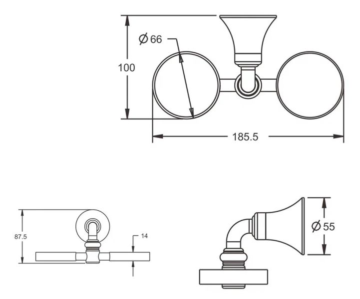 Стакан двойной для ванной комнаты Rose RG1222 хром купить