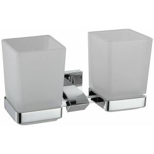 Держатель с 2-мя стаканами для зубных щеток Gappo G0708, цвет хром, из латуни, стаканы стеклянные.