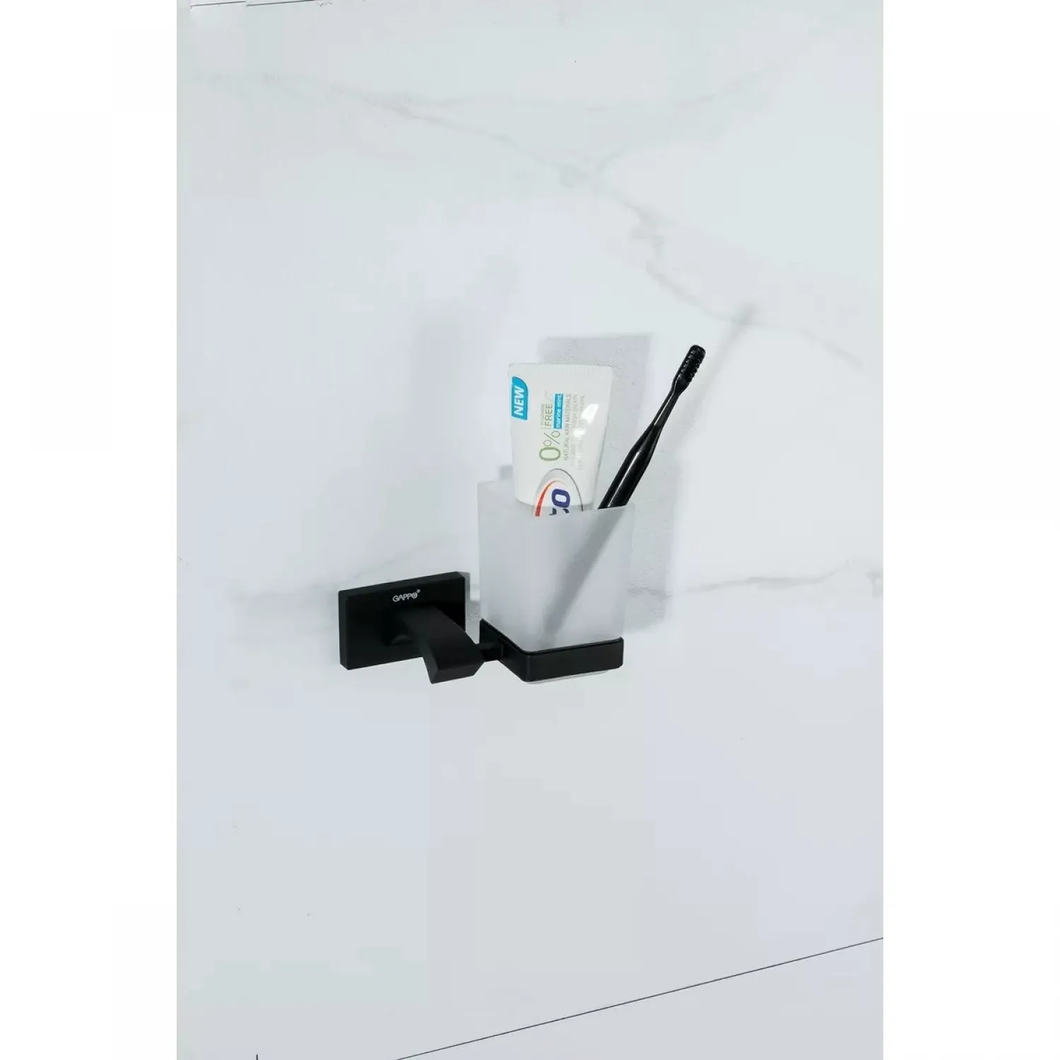 Стакан в ванную на стену Gappo G0706-6, цвет черный, стакан из стекла, держатель из латуни.