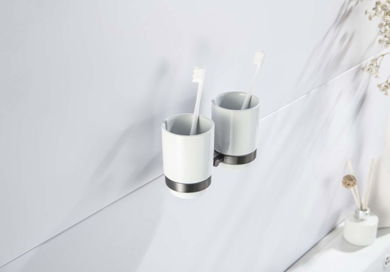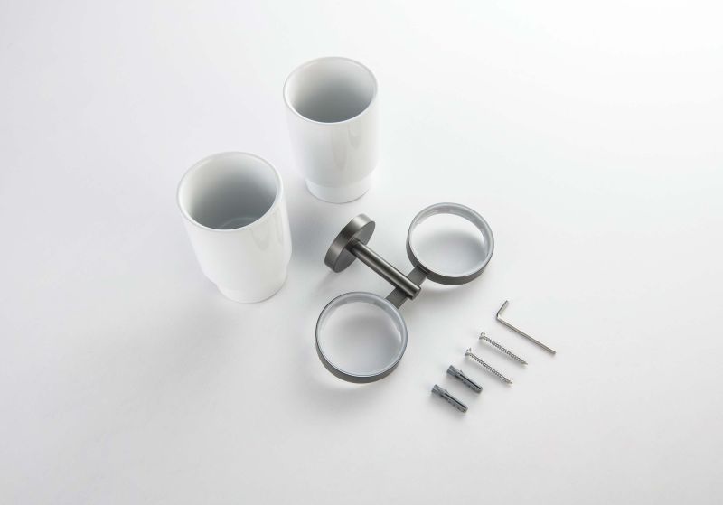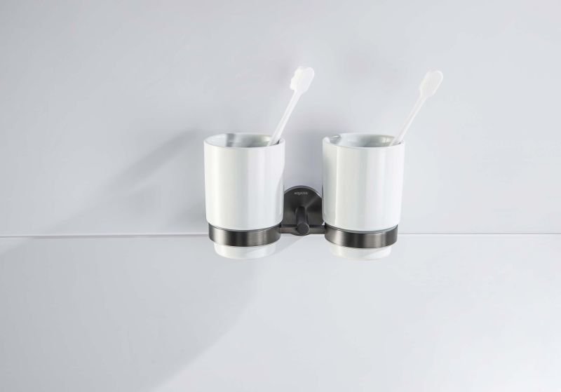 Стакан с держателем двойной Aquatek Бетта AQ4617BGM шлифованный чёрный хром купить