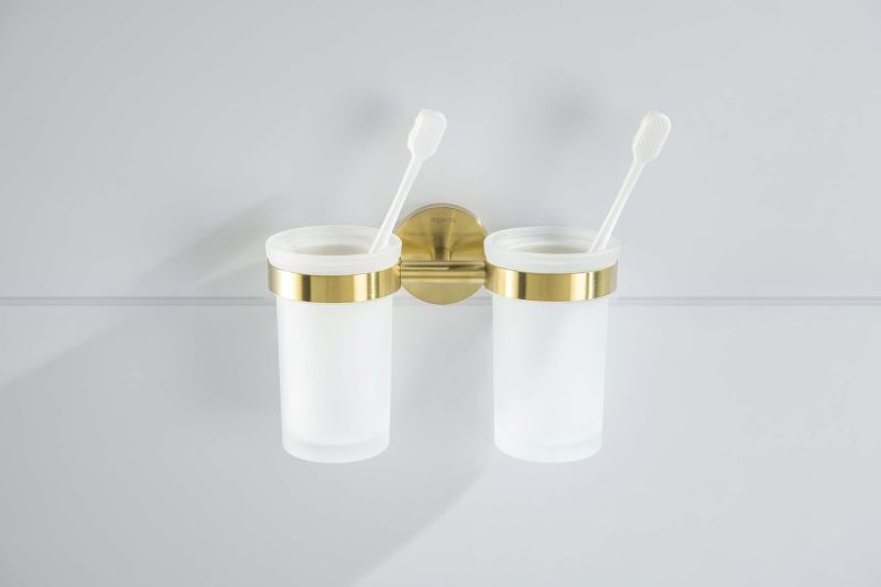 Стакан с держателем двойной Aquatek Европа AQ4117BG шлифованное золото купить