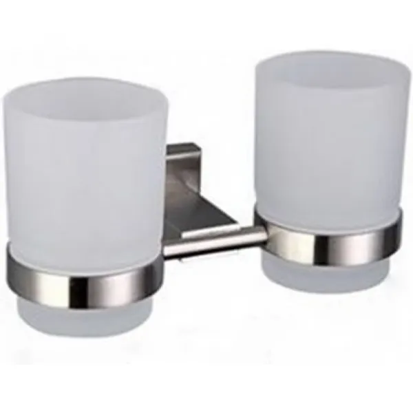 Держатель настенный с двумя стаканами для зубных щеток Gappo G1708, стаканы стеклянные, держатель из нержавейки, цвет сатин.