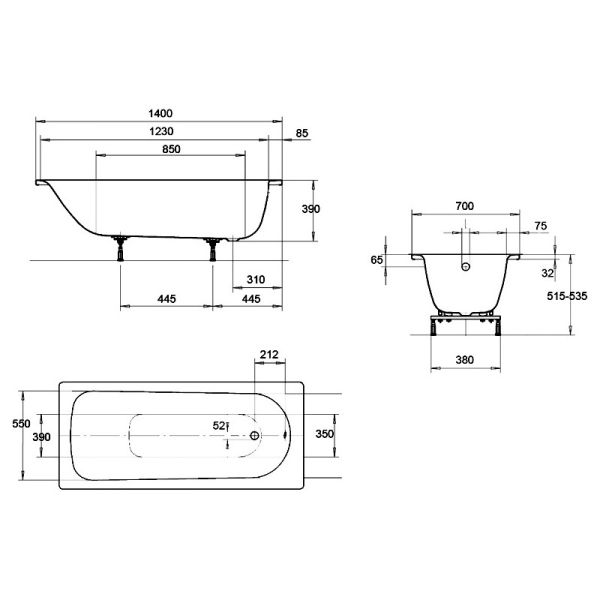 Стальная ванна Kaldwei Eurowa 309-1 140х70 купить