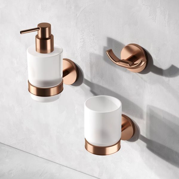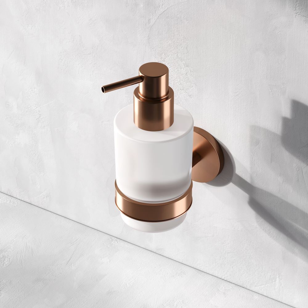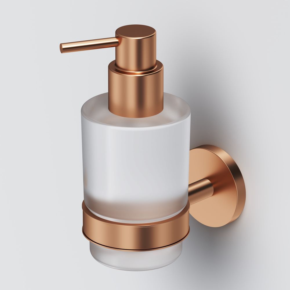 Стеклянный диспенсер для жидкого мыла с настенным держателем AM.PM X-Joy A85A36944 розовое золото купить