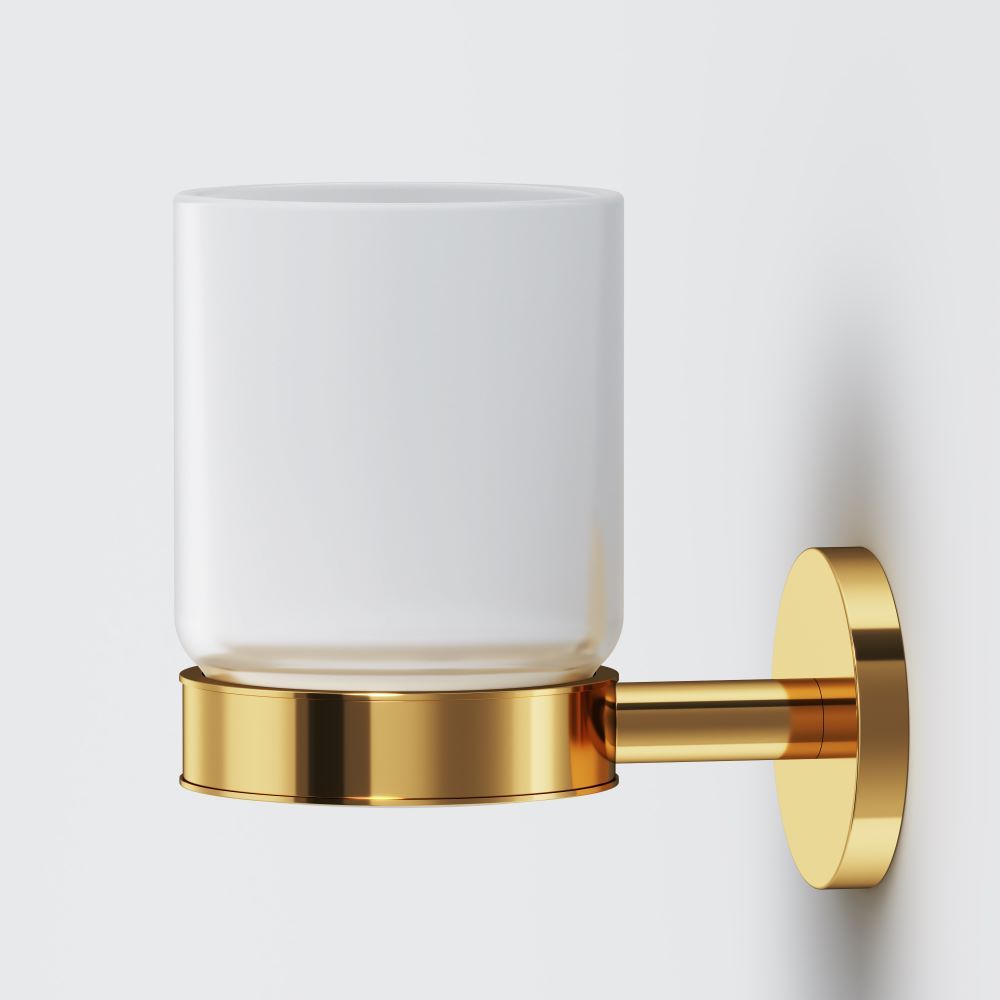 В основе дизайна аксессуаров – контраст между строгими квадратными и плавными округлыми формами. Это небанальное сочетание форм делает облик продуктов универсальным, что позволяет им вписаться в любой интерьер.Стеклянный стакан X-Joy – незаменимый аксессуар для вашей ванной. Подвесная установка делает этот продукт невероятно удобным для использования. Продукт выполнен из сплава металлов высочайшего качества с блестящим золотым покрытием устойчивым к механическим повреждениям и матового стекла.