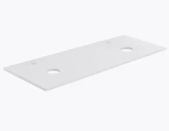 В столешнице Терра предусмотрены 2 отверстия: под слив раковины и под смеситель с установкой на столешницу. Расположение смесителя - за чашей раковины, по центру.
