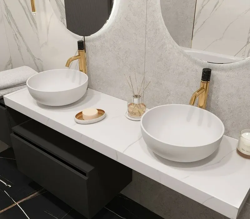 Столешницы под раковины-чаши также представлены в размерах 80см, 100см, 120см, 140см. Под заказ возможно изготовление столешниц под чаши в любом размере.