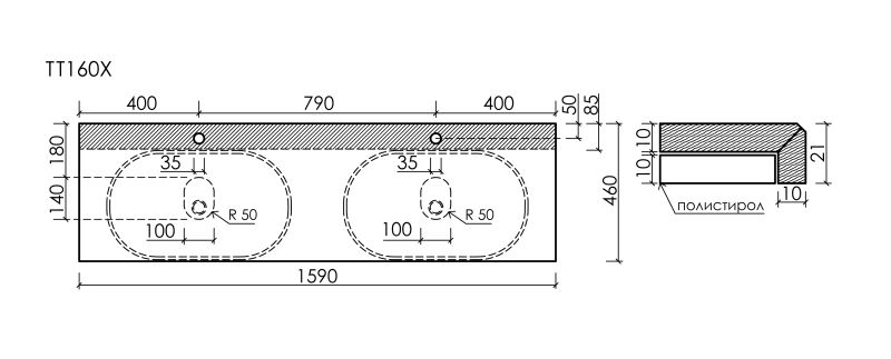 - Столешница выполнена из натурального керамогранита по двухслойной технологии.