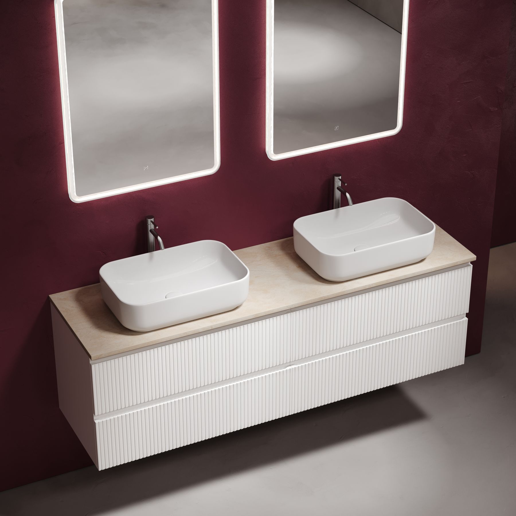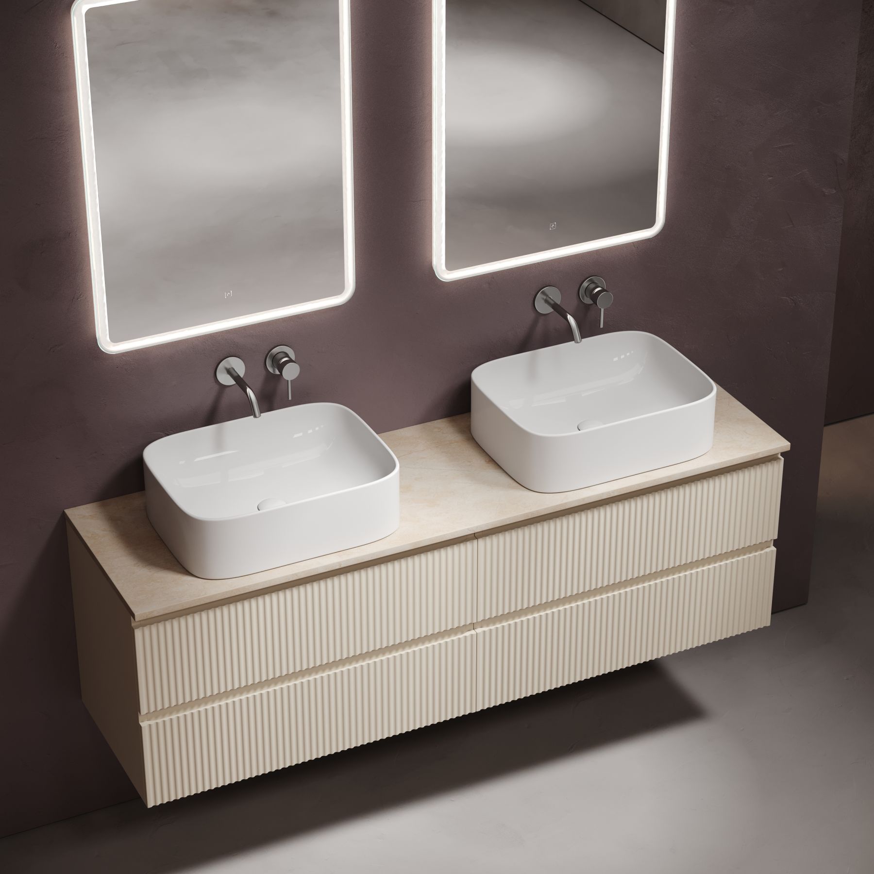 - Возможность комплектации с двумя подвесными тумбами в размере 800 мм из коллекций: FOLK, VERY, SNOB R, SNOB T, MARMI 1.0, MARMI 2.0.