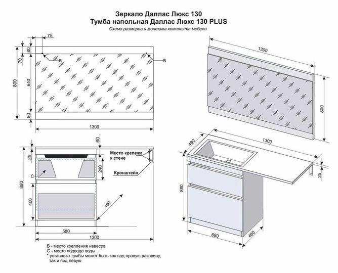 Компания Style Line использует при производстве высококачественные водоотталкивающие материалы (МДФ), соответствующие всем необходимым требованиям безопасности. Серия Альба отличается превосходным дизайном с соблюдением всех отличительных элементов современного стиля. Основным цветом, в котором выполнена тумба под раковину Style Line Альба является белый, отлично подходящий большинству дизайнерских решений. Тумба под раковину предусматривает удобную и вместительную систему хранения, состоящую из ящиков. Важные габариты изделия: ширина 89.8 см, глубина 45.2 см, высота 82 см. Страной бренда Style Line является Россия, все товары производятся с выполнением соответствующих стандартов качества, что позволяет быть полностью уверенными в долговечности и надежности. Тумба для комплекта Style Line Альба 90 L с бельевой корзиной поможет сделать уютным любой интерьер и создать идеальную ванную комнату. Тумба с раковиной Style Line El Fante Даллас 130 см, Люкс, напольная, белый, Plus, эмаль, левая, СС-00002348/ СС-00000541Тумба с раковиной