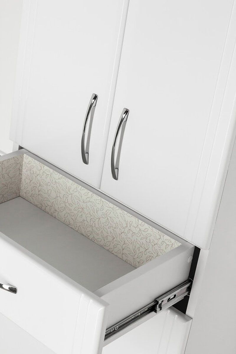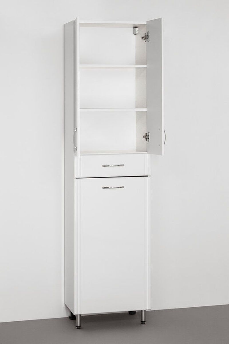 Колонна напольная бренда "Style Line" Эко Стандарт 48 с бельевой корзиной. Фурнитура - хром, эксклюзивный декор "Луино" - ламинация внутренней стороны изделия. Направляющие полного выдвижения Hettich; сборка изделия с помощью эксцентриковых стяжек Hafele; все материалы полностью влагостойкие