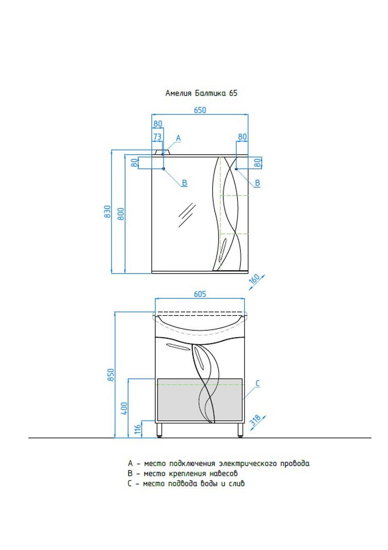 Тумба напольная "Амелия" с декоративной фрезеровкой фасада. Фурнитура - хром, петли на дверцах с механизмом плавного закрывания. Направляющие полного выдвижения Hettich, обеспечивающие плавность и бесшумность хода, высокую надежность и прочность. Данная тумба предусматривает открытую подводку воды