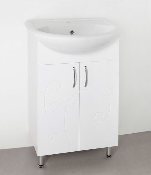 Тумба напольная бренда "Style Line" Эко Фьюжн 9. Фурнитура - хром, тонкая элегантная декоративная фрезеровка фасадов. Направляющие полного выдвижения Hettich; эксклюзивный декор "Луино" - ламинация внутренней стороны изделия; сборка изделия с помощью эксцентриковых стяжек Hafele; все материалы полностью влагостойкие. Данная тумба предусматривает открытую подводку воды