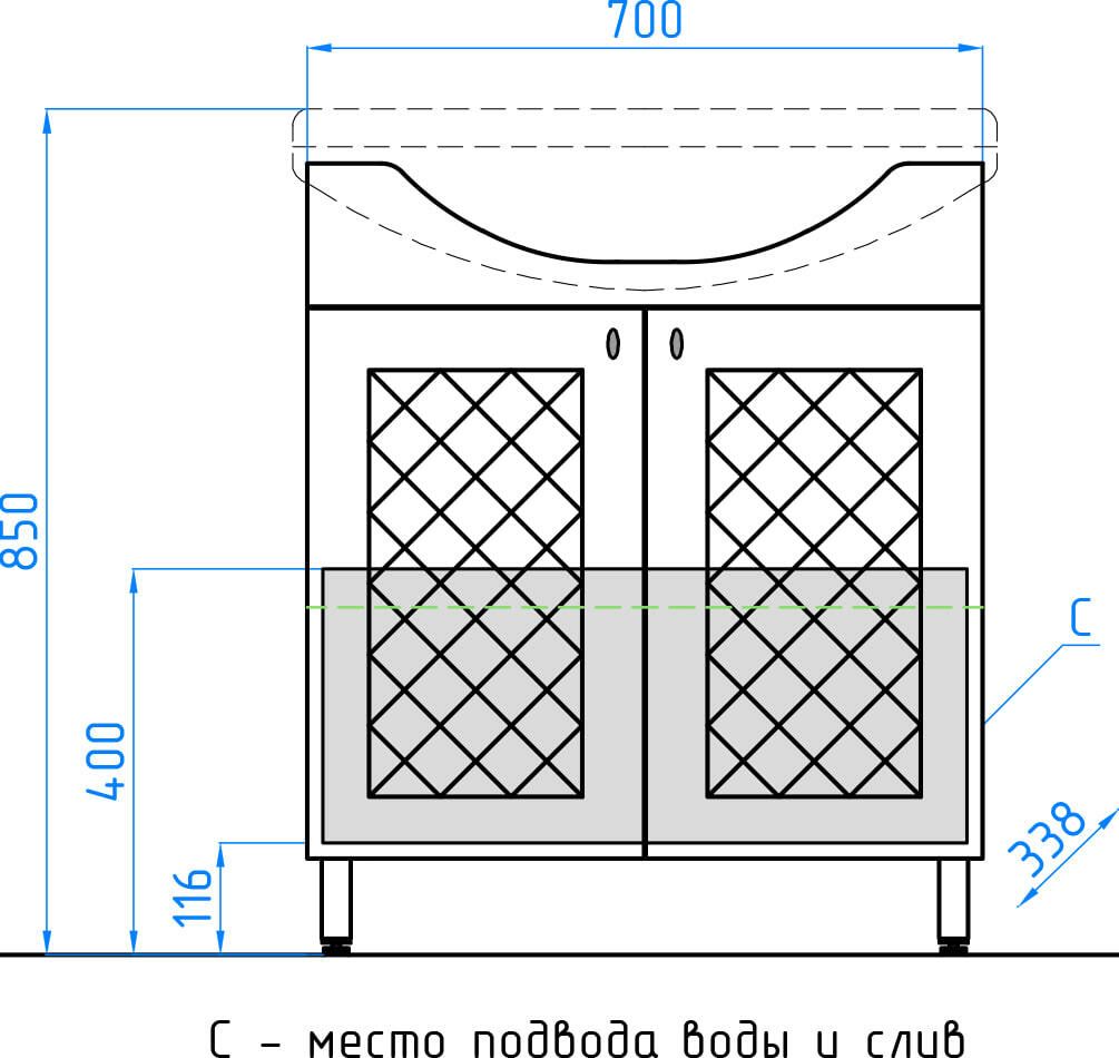 Тумба напольная бренда "Style Line" коллекции "Канна" с современной 3D фрезеровкой фасада, которая придает мебели индивидуальность и особый колорит. Фурнитура - хром, петли на дверцах с механизмом плавного закрывания. Направляющие полного выдвижения Hettich обеспечивают плавность и бесшумность хода, высокую надежность и прочность. Данная тумба предусматривает открытую подводку воды. Боковины изделий в пленке в цвет фасадов