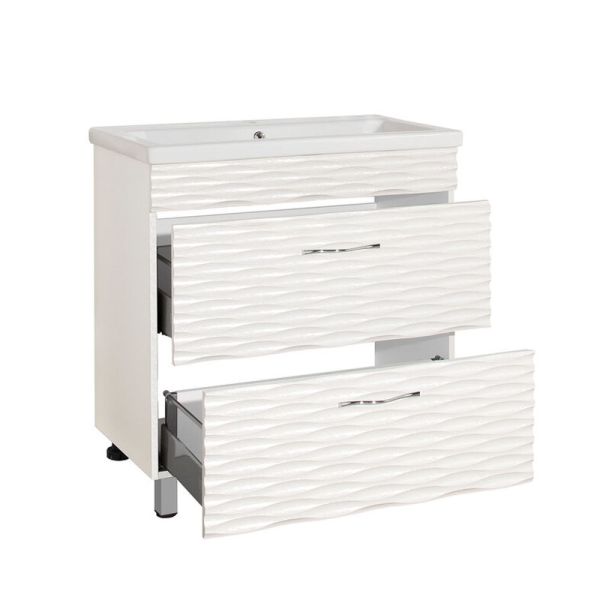 Тумба напольная бренда "Style Line" коллекции "Ассоль" с изысканной 3D фрезеровкой фасада, которая придает мебели неповторимый стиль. Перламутровые переливы цвета в данной коллекции станут отличным украшением в интерьере. Фурнитура - хром, петли на дверцах с механизмом плавного закрывания. Доводчики "Blum" обеспечивают плавность и бесшумность хода, высокую надежность и прочность. Данная тумба предусматривает открытую подводку воды. Боковины изделий в пленке в цвет фасадов