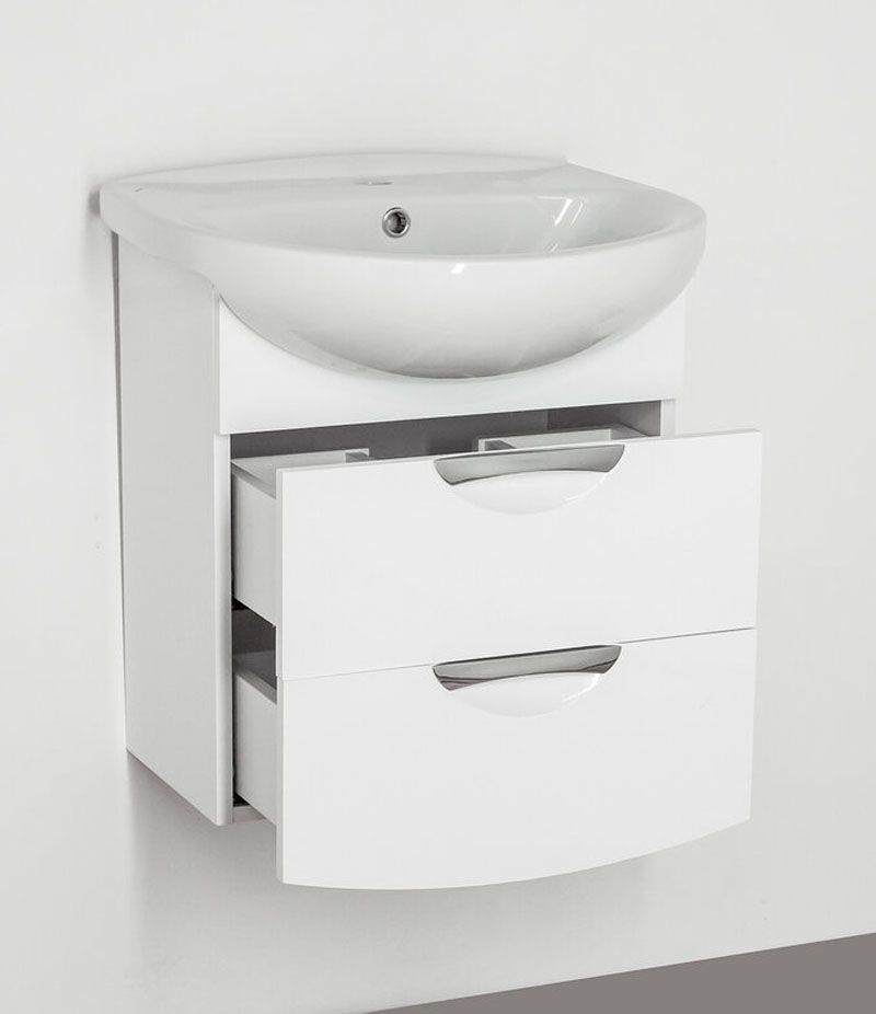 Тумба подвесная бренда "Style Line" коллекции "Жасмин 2" с двумя ящиками и стильными врезными ручками. Фурнитура - хром. Доводчики "Hettich" обеспечивают плавность и бесшумность хода, высокую надежность и прочность. Боковины изделий в пленке в цвет фасадов. Данная тумба предусматривает открытую подводку воды