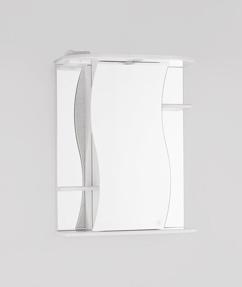 Зеркало-шкаф бренда "Style Line" коллекции "Лилия 55/С" с высокоточной обработкой кромки фацетом и подсветкой. Фурнитура - хром. Кромка зеркала "Лилия 55/С" зашлифована, что защищает от порезов. Лазерная гравировка фирменного логотипа. Край полочек имеет трапецевидную еврокромку. Эксклюзивный декор "Луино" - ламинация внутренней стороны изделия