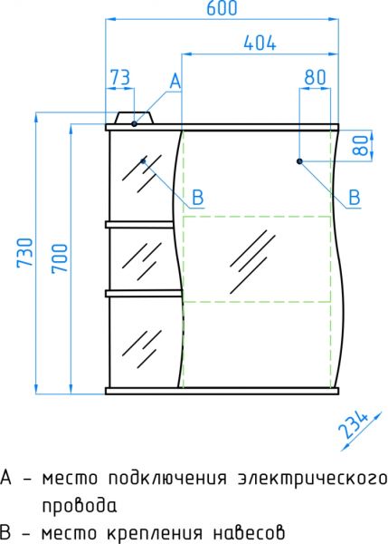 Зеркало-шкаф бренда "Style Line" коллекции "Волна 60/С" с высокоточной обработкой кромки фацетом и подсветкой. Фурнитура - хром. Кромка зеркала "Волна 60/С" зашлифована, что защищает от порезов. Лазерная гравировка фирменного логотипа. Край полочек имеет трапецевидную еврокромку. Эксклюзивный декор "Луино" - ламинация внутренней стороны изделия