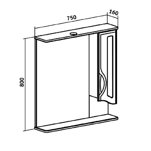 Зеркальный шкаф Runo правый Толедо 75 (00000001041) купить